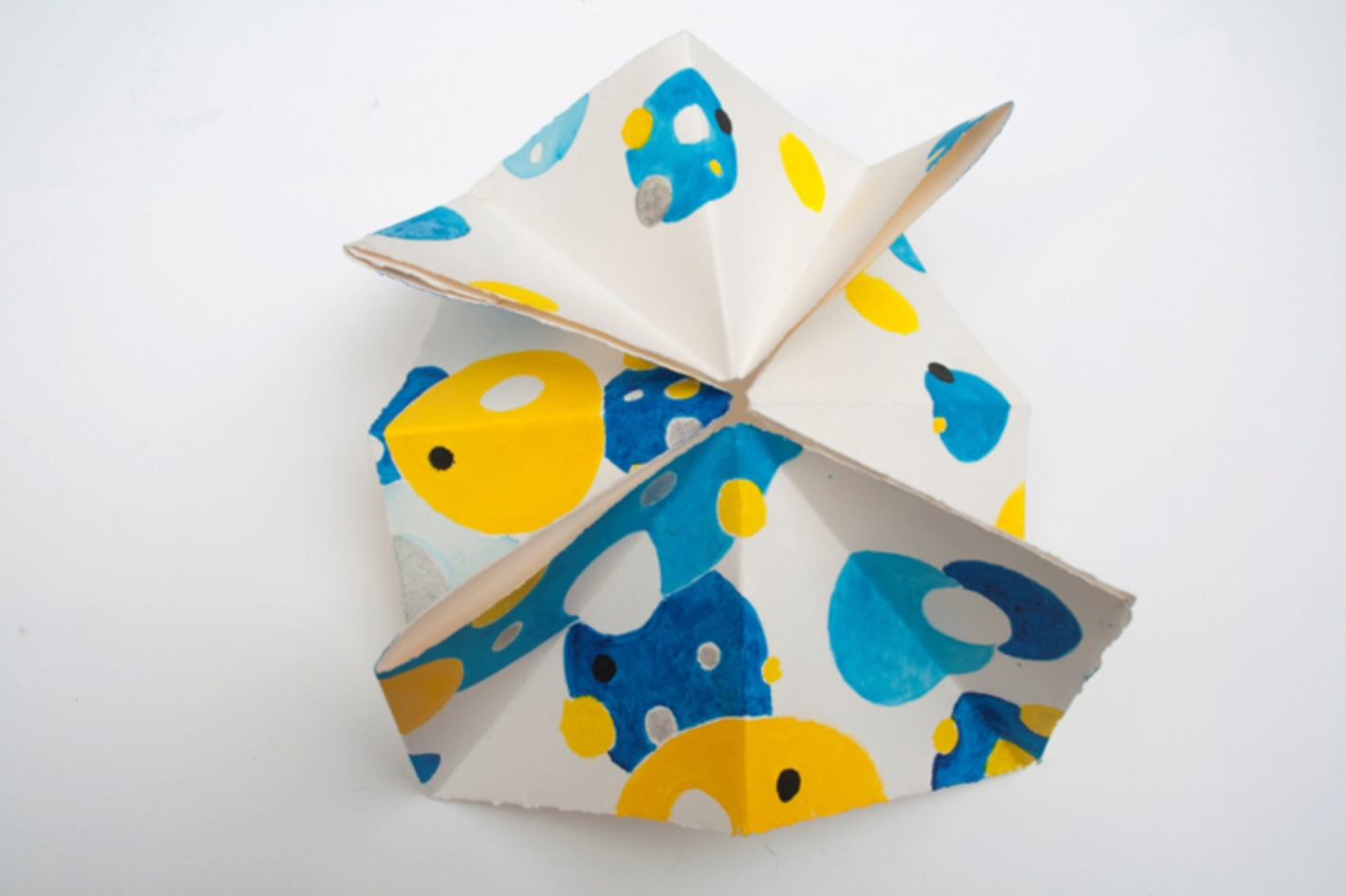 “Llevo mucho tiempo creando el “Libro sin letras”. Empiezo con una página en blanco, pongo una mancha y una línea, y sale un dibujo. Paso la página y continúo la imagen de la mancha y la línea… entonces, nace un cuento de los dibujos. A veces, cortando una página podemos ver parte de la imagen de la página siguiente y así consecutivamente... pasando la página, continuarán los colores y las formas que incitan a la imaginación.