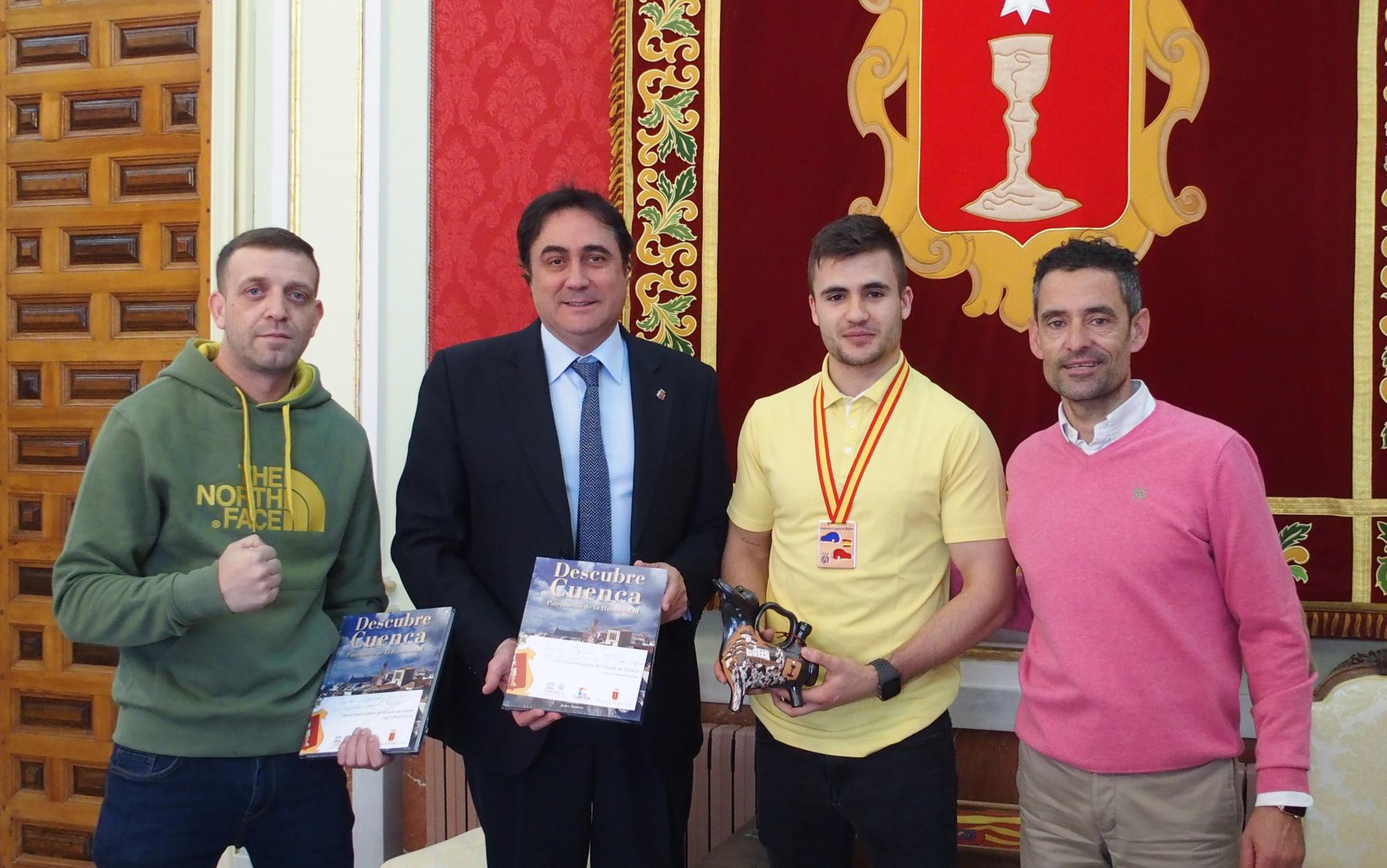 El alcalde de Cuenca, Ángel Mariscal y el concejal de Deportes, Ángel Llorens han recibido en el Ayuntamiento al boxeador conquense Juan Tovar que consiguió la medalla de bronce en el Campeonato de España de Boxeo por clubs disputado el fin de semana pasado en Ponferrada; ambos le han dado la enhorabuena y deseado muchos éxitos en su trayectoria deportiva; su entrenador Carlos Fernández, del ‘Gipsy Team Box’ también ha estado presente.