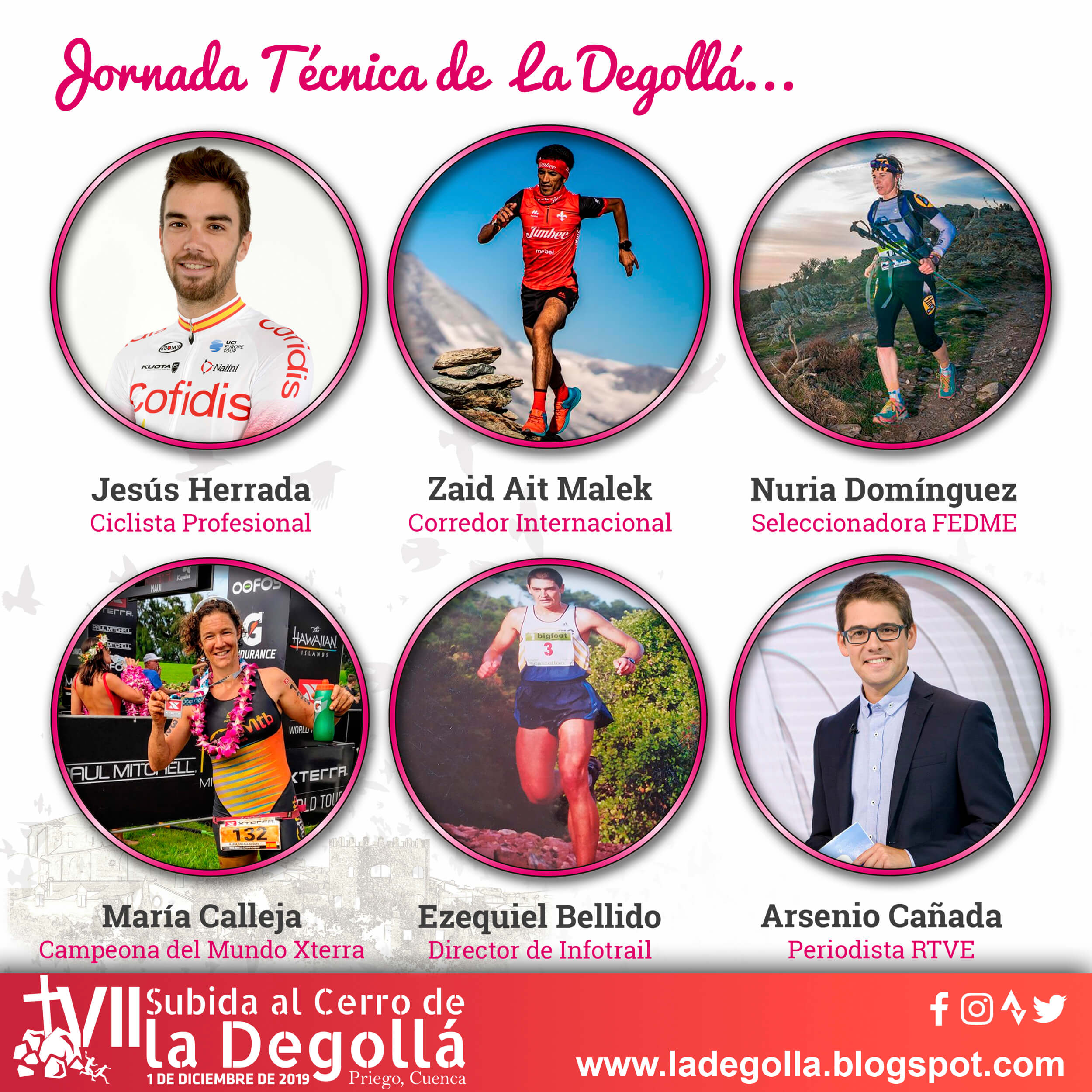 El ciclista Jesús Herrada, el corredor Zaid Ait Malek, la triatleta María Calleja, el co-fundador de Corredor de Montaña y fundador de Infotrail, Ezequiel Bellido y la seleccionadora de Carreras por Montaña FEDME, Nuria Domínguez participarán en la jornada.