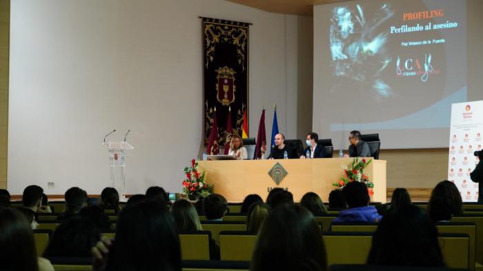 El Paraninfo del Campus de Cuenca acoge la primera edición del programa UCLéeMe-General Óptica, la iniciativa promovida por la Universidad de Castilla-La Mancha (UCLM) para promover la lectura en niveles preuniversitarios y que se celebra de forma paralela al octavo Festival de Novela Criminal Las Casas Ahorcadas. Precisamente, el director de este encuentro, Sergio Vera, ha participado en esta primera edición del UCLéeMe, que ha inaugurado el vicerrector de Cultura, Deporte y Responsabilidad Social, César Sánchez Meléndez, junto al responsable del área de Levante de General Óptica, Javier Jaén, quienes compartieron mesa con la jurista, criminóloga y profesora Paz Velasco, especialista en personalidad psicopática y delitos violentos, y que ha ofrecido un taller sobre la definición del perfil de un asesino.