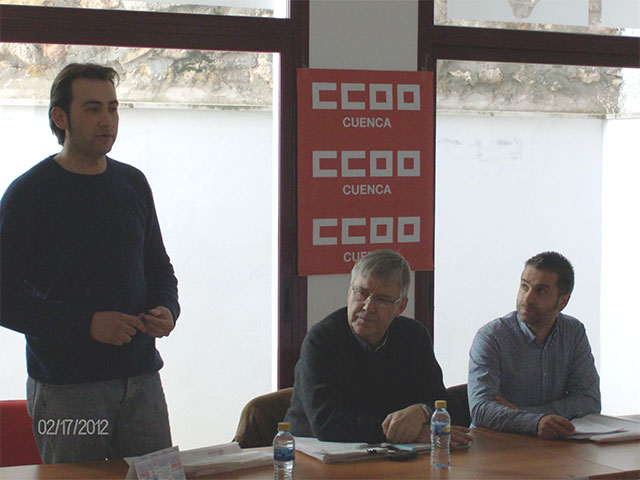 En el salón de actos del Museo de la Alfarería de Mota del Cuervo, del Ayuntamiento de esta localidad, se congregaron trabajadores del sector de los municipios de la comarca que compartieron con los portavoces de CCOO el análisis de las difíciles circunstancias que rodean a la construcción que es uno de los sectores más castigados por la crisis y que lo atestigua el dato ofrecido por Julio Ugena de que se han perdido un 60% de los empleos desde que comenzó la crisis y que se va ver aún más afectados con la reforma laboral. “La construcción está parada y la reforma laboral lo hundirá más”, sentenció el secretario regional de FECOMA.