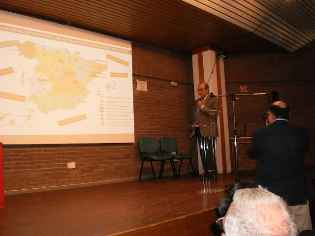 Primero intervino Javier González Bayón, licenciado en ciencias físicas, experto en energía nuclear, del área de energía de Ecologistas en Acción que abrió el evento para explicar brevemente en qué consisten los residuos nucleares y el ATC. Por parte de Enresa, el Ingeniero Pablo Zuloaga, hizo una breve exposición, exclusivamente técnica del proyecto que se tiene que empezar todavía a desarrollar. Para cerrar las exposiciones, habló el doctor Rafael Herranz, presentado como médico de un hospital público, para hablar de radiactividad y sus efectos para la salud.
