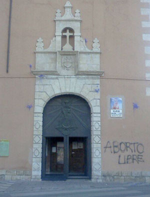 La fachada de la iglesia de la Virgen de Luz, situada en la avenida de los Alfares en el barrio de San Antón de la capital conquense, amaneció esta mañana con una pintada a favor del aborto. El autor o autores de este acto vandálico también lanzaron contra la pared unos huevos rellenos de pintura morada.