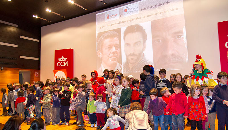Uno de los momentos más emotivos fue el que protagonizaron Alicia y Carlos, dos niños de 9 y 12 años quienes, como portavoces de los asistentes, recordaron el trabajo de los periodistas y en especial, el los españoles secuestrados en Siria, Marc Marginedas, Javier Espinosa y el fotógrafo, Ricardo García Vilanova: “Hoy queremos acordarnos en especial de tres periodistas españoles que están secuestrados en Siria, un país que está en guerra. Ellos fueron allí a cubrir una noticia y estas navidades no podrán pasarla con sus familias. A Marc, Ricardo y Javier, secuestrados en Siria, y a todos los periodistas del mundo, un fuerte aplauso”.