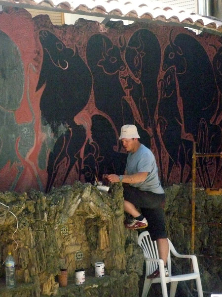 Tras los trabajos previos de preparación de lo que sería el gran mural, Martínez Culebras ha destacado que en apenas ocho días habían terminado el trabajo: un gran mural en el que se enlazan escenas de caza, hombres y animales, enlazados según la estética singular que desarrolló Mercedes.