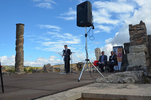En este acto el presidente de la Diputación, Benjamín Prieto, ha explicado que el objetivo que se ha propuesto lograr al asumir esta gestión es que “para el visitante Segóbriga no sea el punto de llegada, ni de destino, sino el de salida para conocer todo un territorio, toda una provincia”. En este deseo ha justificado prieto una apuesta que, según ha recordado, está en sintonía con otros proyectos ya en marcha como el desarrollo del Plan de Mejora de Infraestructuras Turísticas de la provincia, con una inversión de más de 7.000.000 de euros y que en el propio parque de Segóbriga, con una inversión de 250.000 euros de fondos propios de la Diputación, va a posibilitar la rehabilitación y adecuación del criptopórtico del Foro para albergar nuevas actividades.
