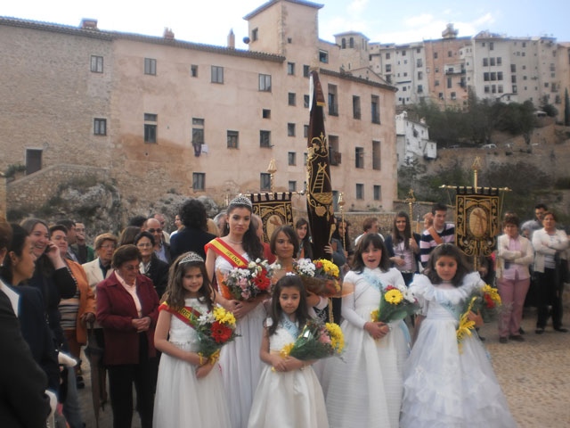 Abría el cortejo procesional, la banda de Tambores y Trompetas de Villaescusa de Haro, seguido del guión de la hermandad del Cristo del Amparo, continuado del pendón de la hermandad de la Exaltación de la Cruz, escoltado por sus hermanos mayores, como rige el estatuto de hermanamiento entre las dos, no en vano el origen de esta hermandad que desfila en la semana santa de Cuenca, está vinculado directamente a la del Cristo del Amparo.