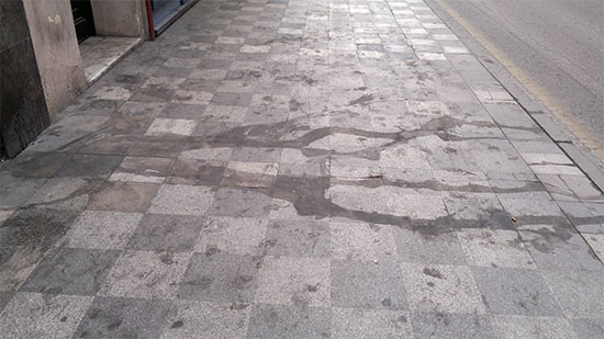De hecho, lo que muestra la fotografía es sólo un ejemplo de cómo se encuentra esta céntrica vía”. En su opinión, “da hasta vergüenza mirar al suelo y encontrarse con esas enormes manchas que dan una sensación total de falta de limpieza”.