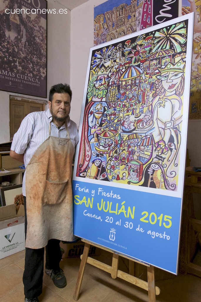 Me he inspirado en la alegría de la Fiesta de san Julián. Tuve el honor de ser también cartelista de san Mateo y Semana Santa y me faltaba este cartel, y la verdad que doy muchísimas gracias al Ayuntamiento por haber confiado otra vez en mi arte. Quise plasmar lo que es la alegría de san Julián y lo que son recuerdos de mi niñez y he marcado ahí todo lo que yo recordaba de cuando era pequeño.