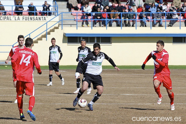 Poco minutos después sufriría los conquense la primera expulsión del partido, pues Javi Selvas vería la segunda amarilla por golpear a un contrario en el salto en la disputa del balón. Quedaba media hora para la finalización del partido y el equipo debería sufrir mucho para conseguir algo positivo.
